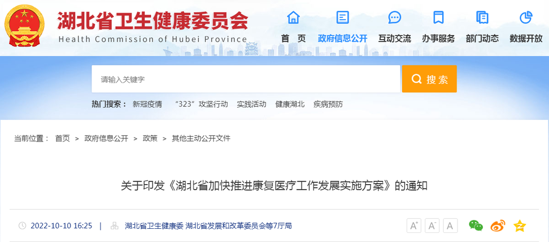 先前,國家衛生健康委等8部委發布《關于印發加快推進康復醫療工作發展意見的通知》。近來,湖北省衛健委、湖北省發改委等7廳局也印發了《湖北省加快推進康復醫療工作發展實施方案》。