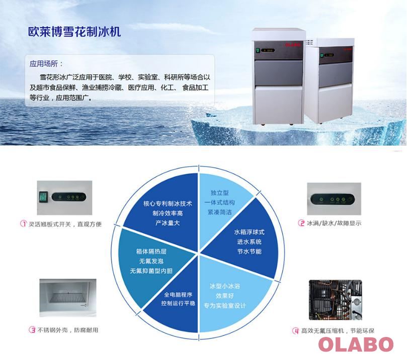 ● 所制冰形為不定形的細(xì)小顆粒狀雪花碎冰,冰形小,能滲入較窄間隙, 冷卻速度快,冰浴效果好,專為實(shí)驗(yàn)室設(shè)計(jì)。