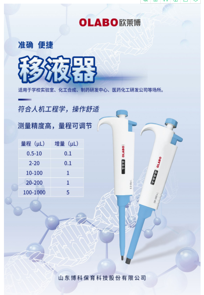 當前位置 > 首頁 > 產品中心  > 樣品處理 > 移液器> 國產OLABO,B系列單道可調式移液器10-100μl