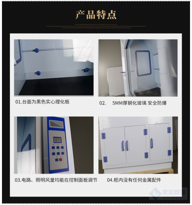 1、柜體采用抗強酸堿、耐化學藥品、耐沖擊瓷白色PP板承制,厚度8mm。整體具有抗強酸、化學藥品,耐沖擊,不腐蝕,不易生銹等特點。